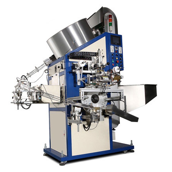 燙金工藝:人工加料至料斗→提升機運料到理料盤→理料盤進行分選→出料經(jīng)過料籠至入料位→入料至分割盤→色標傳感器定位蓋子燙金位置→燙金→成品出料